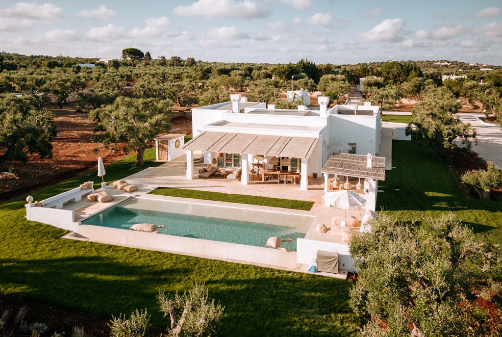 Fünf Kilometer von Ostuni entfernt, eingebettet in einen weitläufigen Olivenhain, liegt Casa Cupido. Die Villa steht ruhig in der Landschaft Apuliens, mit freiem Blick ins Grün und ausreichend Abstand, um wirklich anzukommen. Gleichzeitig bleibt die Lage bewusst angebunden: Die Altstadt von Ostuni ist schnell erreichbar, ebenso die Küste. Es ist genau diese Balance, die den Ort prägt.