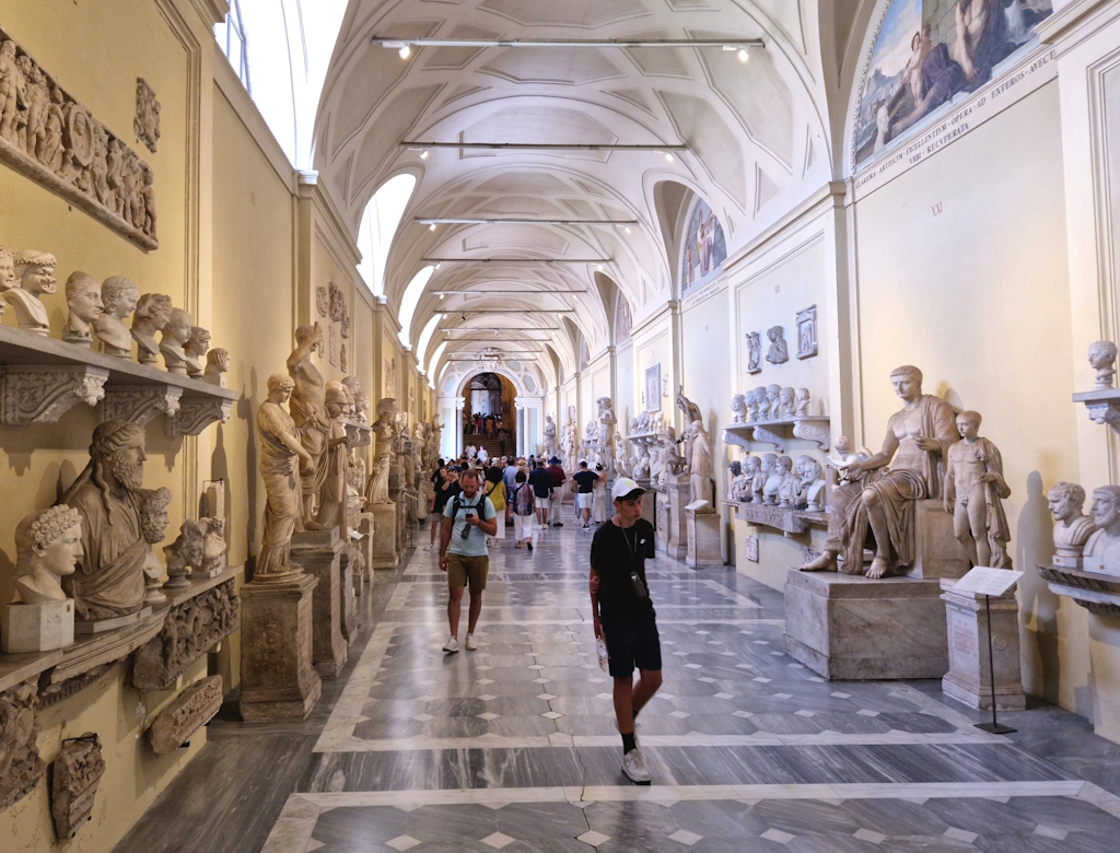 Mit über sieben Kilometern Rundgang gehören die Vatikanischen Museen zu den größten Museumskomplexen der Welt. Sie bestehen aus zahlreichen Sammlungen und Galerien, darunter auch ägyptische, etruskische, moderne religiöse Kunst, die Raffael-Räume sowie zahlreiche Skulpturensäle.