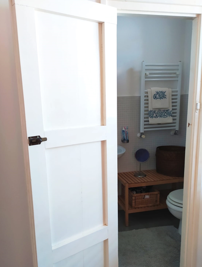 Die Unterkunft erstreckt sich über zwei liebevoll gestaltete Etagen. Im ersten Stock befinden sich ein Schlafzimmer mit Doppelbett, ein Wohnzimmer mit Schlafsofa und ein modernes Badezimmer. Das obere Geschoss überrascht mit einem Kinderzimmer mit drei Einzelbetten, einem weiteren Bad und einer voll ausgestatteten Küche.