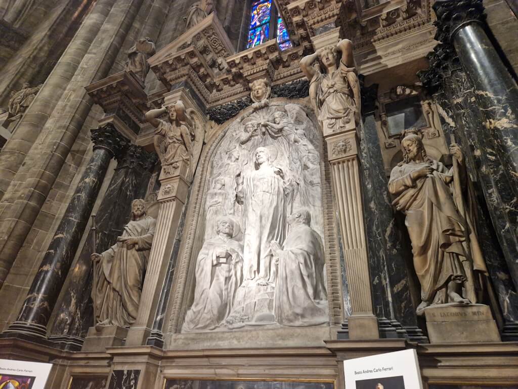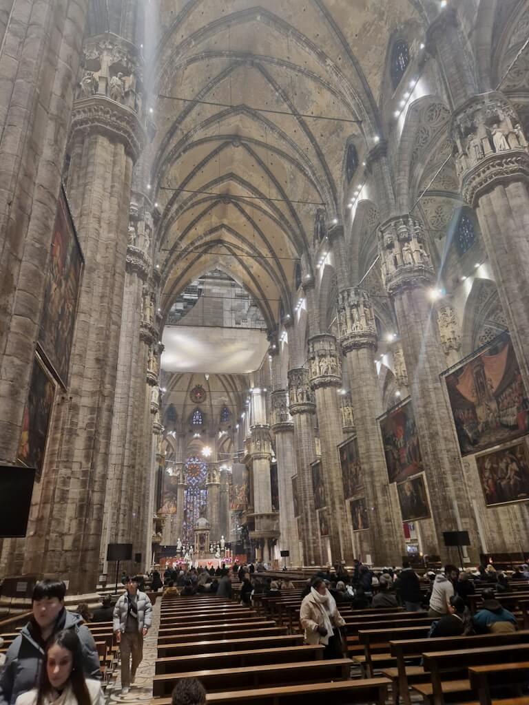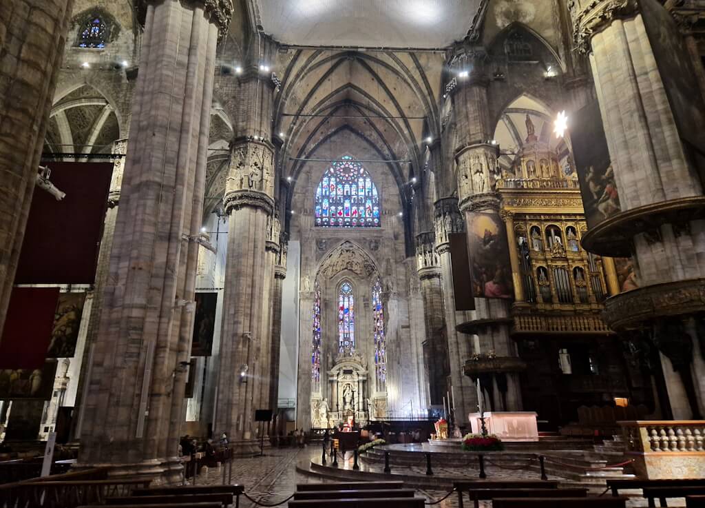 Der Dom war nie nur Repräsentationsbau, sondern stets religiöses Zentrum. Viele Kunstwerke im Inneren stehen im direkten liturgischen Zusammenhang. Reliquien, Altäre und Grabdenkmäler verweisen auf die kirchliche und politische Geschichte Mailands. Der Bau war mehrfach Schauplatz bedeutender Zeremonien. Kunst und Architektur verschmelzen hier zu einer Einheit. Skulpturen sind nicht bloß Schmuck, sondern strukturieren Perspektiven und Blickachsen. Der Raum ist inszeniert, ohne ins Theatralische abzugleiten.