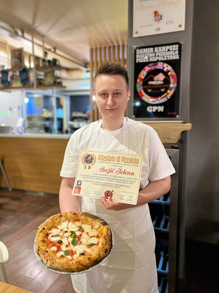 Ebenfalls eine Auszeichnung verdient Alen Alicajic aus Ljubljana, Slowenien, der seine Ausbildung bei der GPN erfolgreich abgeschlossen und sein offizielles Pizzaiolo-Zertifikat erhalten hat! Diese Absolventen tragen das Wissen und die Leidenschaft für die echte neapolitanische Pizza weiter in die Welt.
