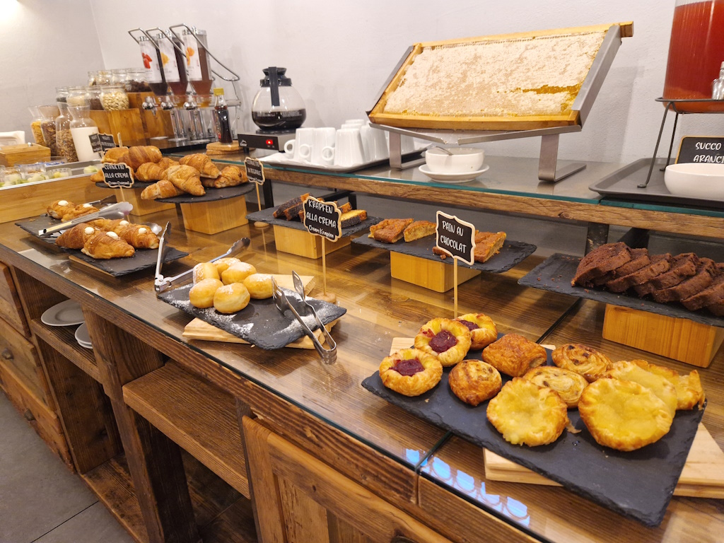 Der Tag im Hotel La Fortezza beginnt auf die wohl beste Art: mit einem reichhaltigen Frühstücksbuffet, das im unteren Bereich des Gebäudes serviert wird. Hier treffen süße Versuchungen wie Cornetto und Kuchen auf herzhafte Optionen wie Käse, Wurst und knusprige Brötchen. Ob man den Tag mit einem typisch italienischen Espresso startet oder sich durch die Vielfalt des Buffets schlemmen möchten – für jeden Geschmack ist etwas dabei.
