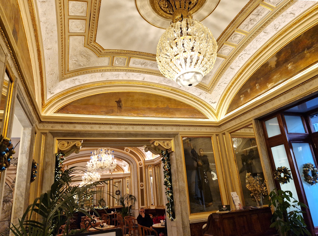 Entscheidend ist im Gambrinus jedoch weniger das einzelne Produkt als die Atmosphäre. Die hohen Decken, die historische Ausstattung, die Spiegel und Gemälde erzeugen einen Raum, der bewusst Wirkung entfaltet. Trotz der vielen Gäste bleibt der Eindruck kontrolliert und professionell. Das Café ist kein stiller Ort, sondern ein lebendiger, öffentlicher Raum, der gesehen werden will.