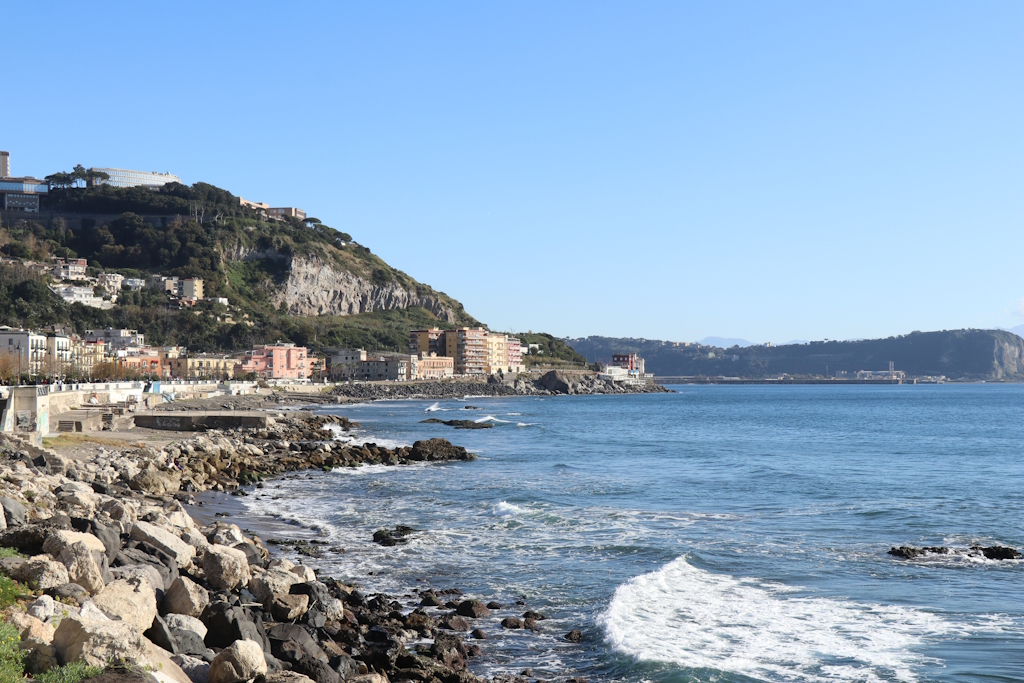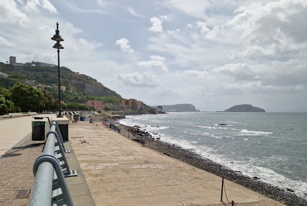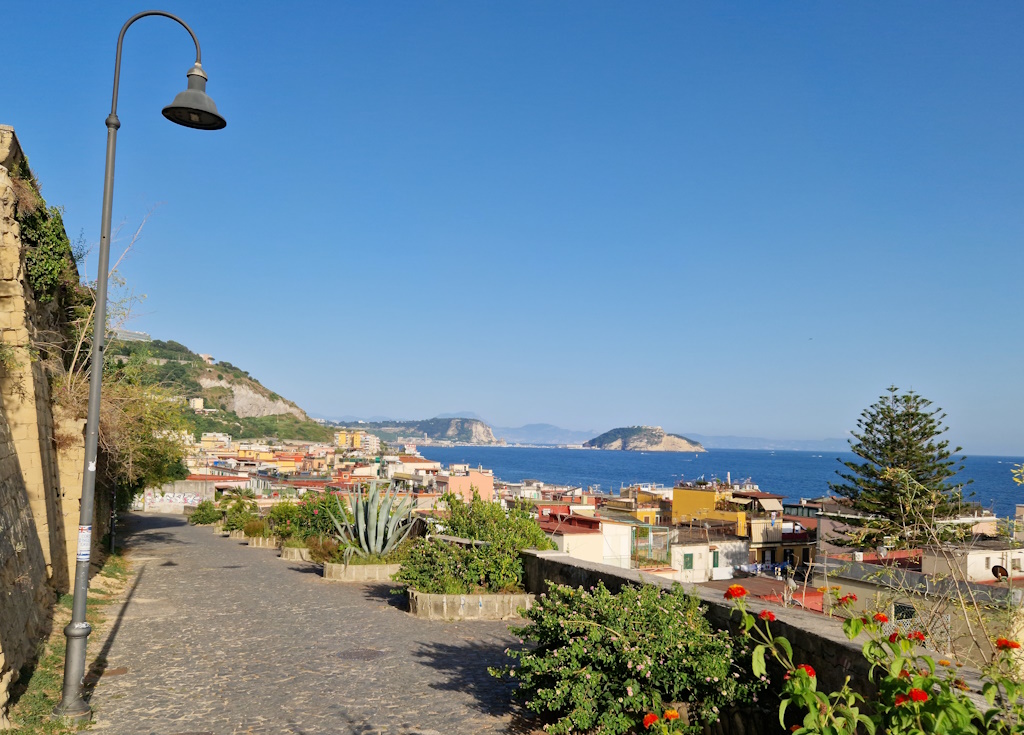 Die große, halbmondförmige Vulkaninsel Nisida liegt im Osten des türkisblauen Meeres von Pozzuoli. Leider konnten wir sie nur von der Promenade aus bewundern. Obwohl eine Straße sie mit dem Festland verbindet, ist sie für Touristen gesperrt – dort befinden sich eine Luftwaffenakademie, eine NATO-Basis und ein Jugendgefängnis.