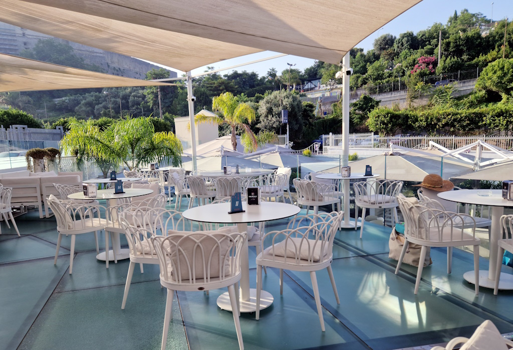 Besuch und Parken sind kostenlos – sofern man im Café etwas bestellt. An dem Tag frühstückten wir dort auch. Viele andere machten dasselbe – sie kamen aus Norditalien, hatten Wohnungen gemietet, weil das günstiger ist, und verbrachten mit ihren Familien Urlaub an der Küste. Besonders im vergangenen Jahr, da in der Lombardei heftiger Hagel gefallen war.
