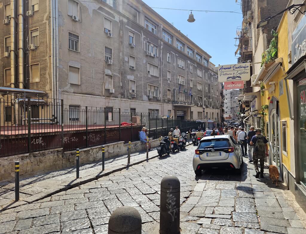 Wer zum ersten Mal mit dem Auto in die Quartieri Spagnoli fährt – oder es versucht – bereut es meist spätestens nach der dritten, zu engen Kurve. Die Straßen des Viertels stammen aus einer Zeit, in der ein Pferd als großes Verkehrsmittel galt. Heute schlängeln sich Motorroller, Kleinwagen, Lieferwagen und mutige Fußgänger durch Gassen, die oft kaum breiter als ein Auto sind. Parkplätze sind Mangelware, Wendemanöver oft nur mit Hilfe von Anwohnern möglich – inklusive lauter Regieanweisungen und vielleicht einem freundlichen Fluch.