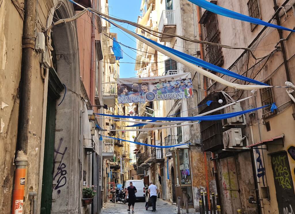 Bis heute sind viele Wohnungen winzig, manche kaum größer als 20 Quadratmeter. Die sogenannten „Bassi“ – Erdgeschosswohnungen direkt an der Straße – sind Relikte aus einer Zeit, in der Armutsbekämpfung kein politisches Ziel war. Wer durch das Viertel läuft, sieht offengelegte Leben: Kochen, Waschen, Streiten – alles passiert sichtbar, hörbar, spürbar.