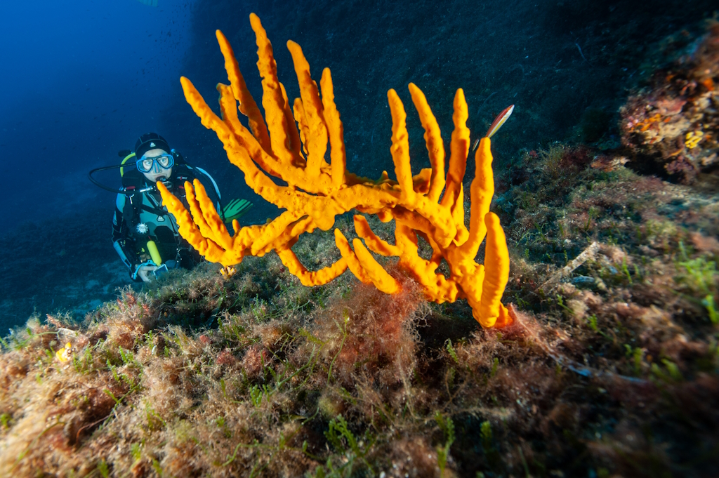 Die Marianna ist damit mehr als nur ein Transportmittel. Sie ist Teil des Gesamtkonzepts, das auf entspanntes, gut organisiertes Tauchen setzt und kurze Wege zwischen Basis, Boot und Tauchplatz ermöglicht. Einer der eindrucksvollsten Tauchplätze im Programm von „Spiro Sub Diving – Elba“ liegt an der Punta di Fetovaia. Das Gebiet ist bekannt für ausgedehnte Gorgonienfelder, in denen rote, gelbe und weiße Fächerkorallen den Fels strukturieren. Hinzu kommen regelmäßig anzutreffende Barrakudaschwärme, Zackenbarsche und eine Vielzahl kleinerer Arten, die den Platz auch biologisch interessant machen.
