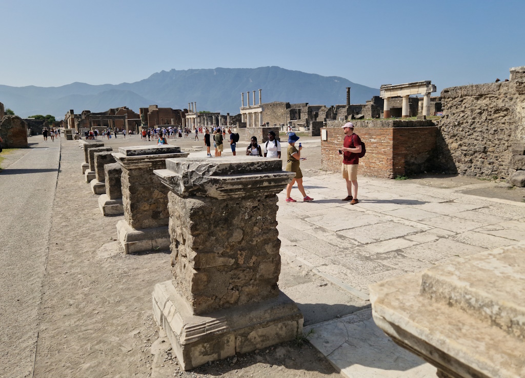 Nicht zu vergessen: der Vesuv selbst. Der Vulkan, der einst Zerstörung brachte, bietet heute eine atemberaubende Aussicht und erinnert an die Kraft der Natur. Viele Besucher erklimmen den Vulkan, um die Umgebung von oben zu bewundern und die Verbindung zwischen Geschichte und Natur zu spüren (aber das ist ein eigener Artikel). Pompeji ist ein Ort, der inspiriert. Künstler, Schriftsteller oder einfach nur Neugierige – alle finden hier etwas, das sie fasziniert. Diese Stadt erzählt Geschichten vom Leben, das nicht vergessen wurde, und von einer Zeit, die man buchstäblich anfassen kann.