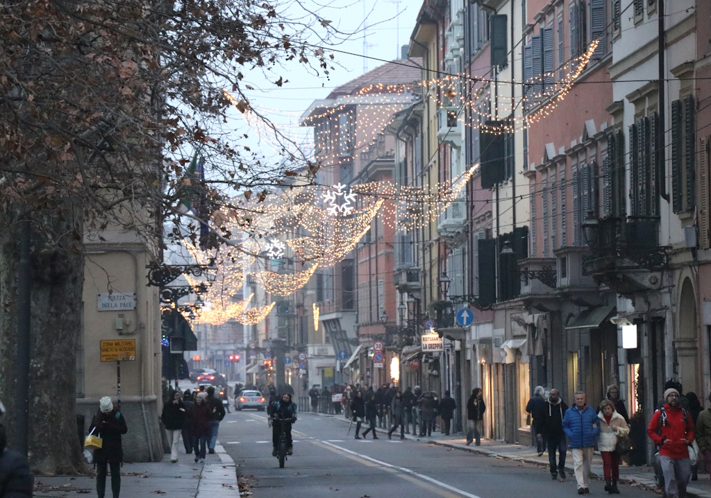 Zur Weihnachtszeit ist Parma dezent dekoriert. Lichter und saisonale Elemente sind vorhanden, dominieren jedoch nicht den Stadtraum. Es gibt keine großflächigen Märkte, die das Zentrum neu strukturieren. Stattdessen bleibt die Stadt funktional und übersichtlich. Für Besucher bedeutet das kurze Wege, wenig Gedränge und eine ruhige Atmosphäre, in der sich die Altstadt gut erschließen lässt.