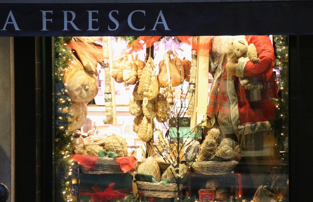 Feinkostgeschäft in der Altstadt von Parma: Parmigiano Reggiano ist fester Bestandteil des städtischen Alltags. (Foto: © Bastian Glumm)